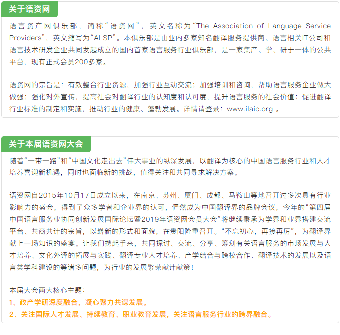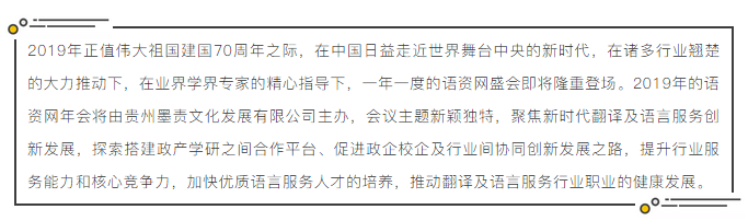 YiCAT·第四屆中國語言服務(wù)業(yè)協(xié)同創(chuàng)新發(fā)展國際論壇暨2019年語資網(wǎng)會(huì)員大會(huì)通知、